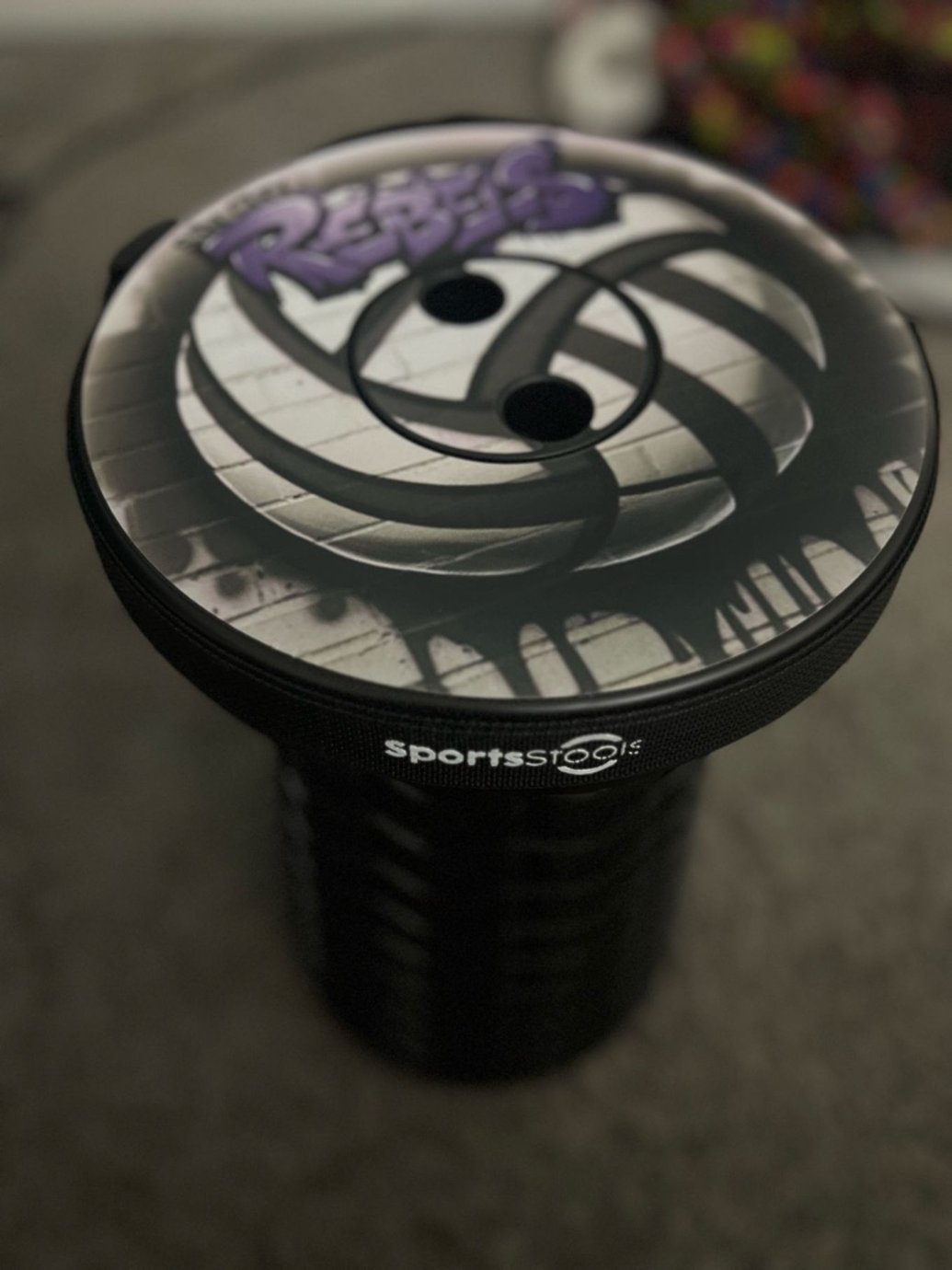 - Available with your supplied custom printed graphics. *Note the black area in the image will be cut out to allow fitment on stool top. Please email high quality graphic to: chris@sportsstools.com and reference the order number.